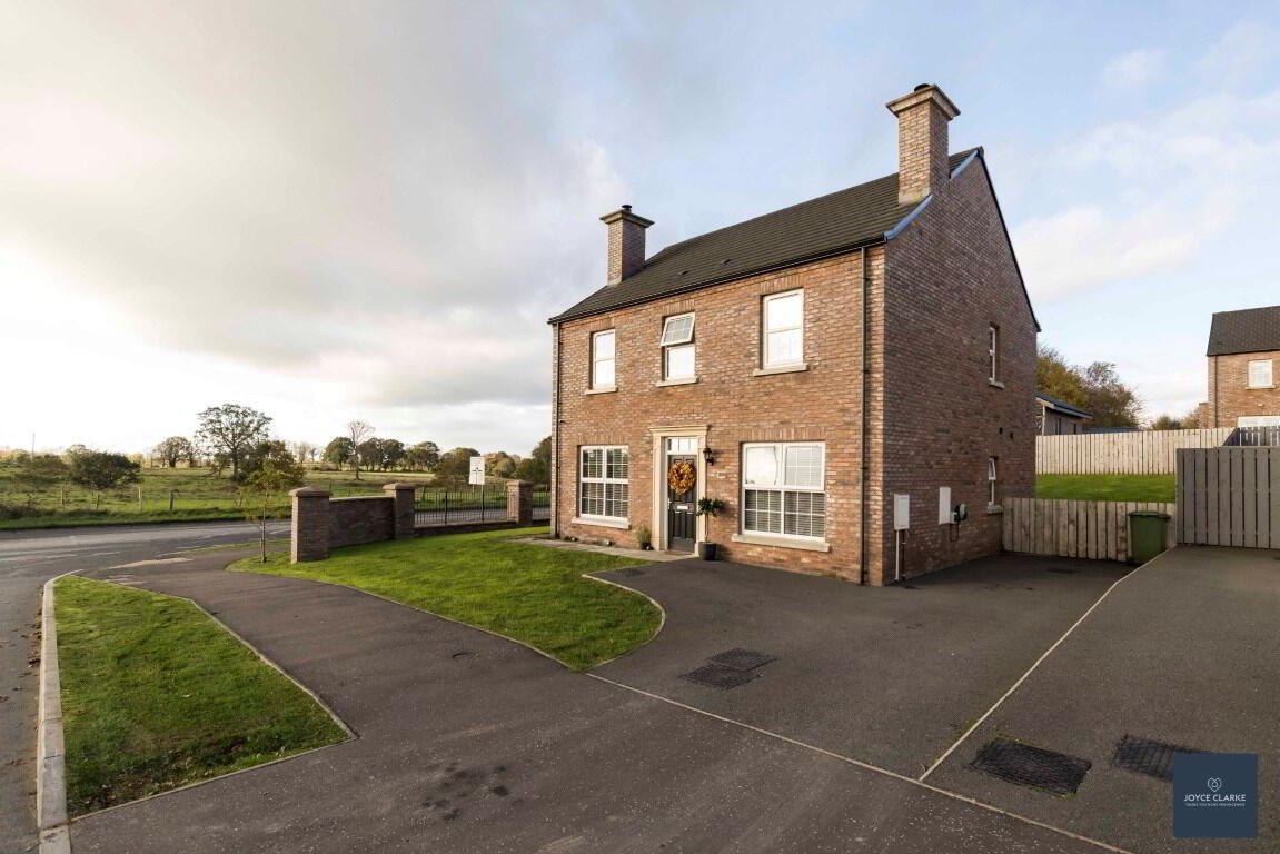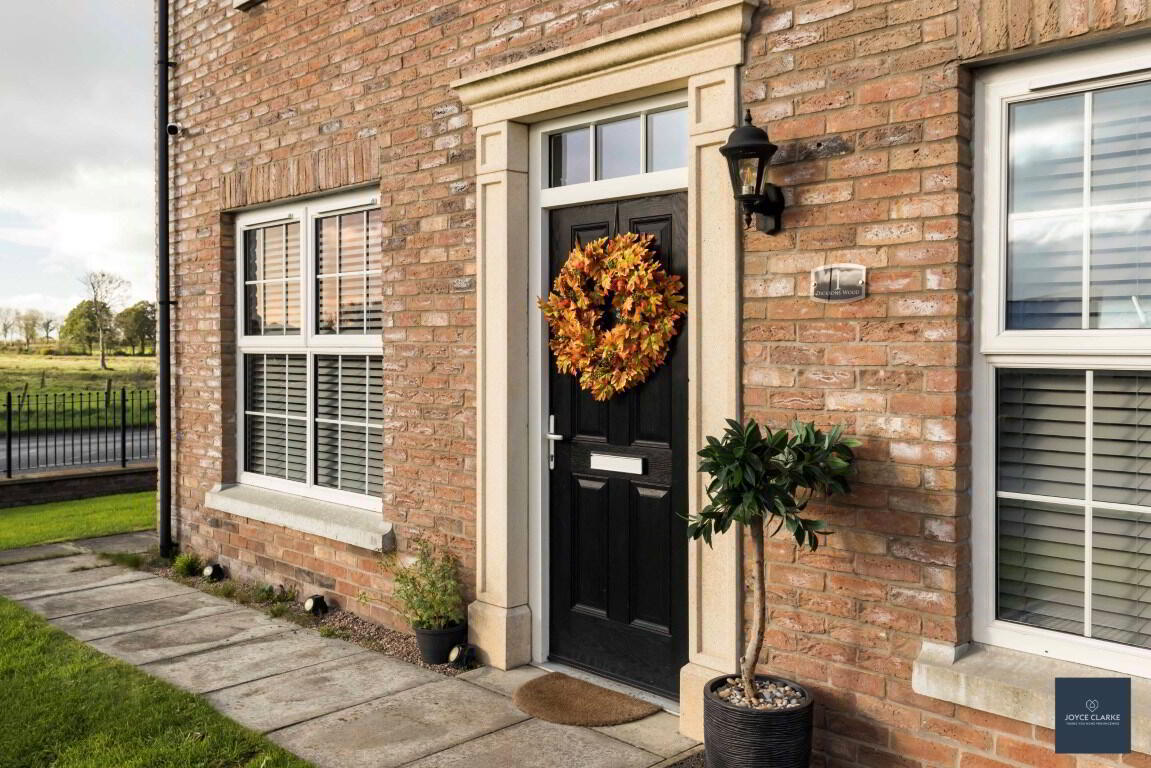 Front garden laid in lawn. Paved pathway leading to front door. Tarmac driveway to side of the property with hammerhead to front. Additional side garden area with brick pillars and estate railing