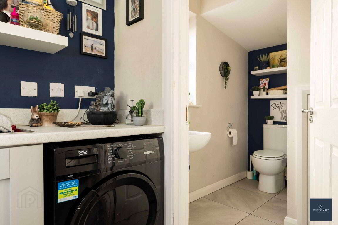 Range of low level units. Space for washing machine and tumble dryer. Stainless steel sink and drainage unit. Gas boiler. Tiled flooring. UPVC door with glazed panel giving access to rear garden. Double panel radiator. Extractor fan.