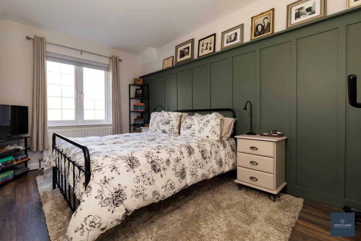 Front aspect double bedroom. Wood effect laminate flooring. Single panel radiator. Walk-in wardrobe (Plumbed for ensuite) with single panel radiator, recessed lighting and extractor fan.