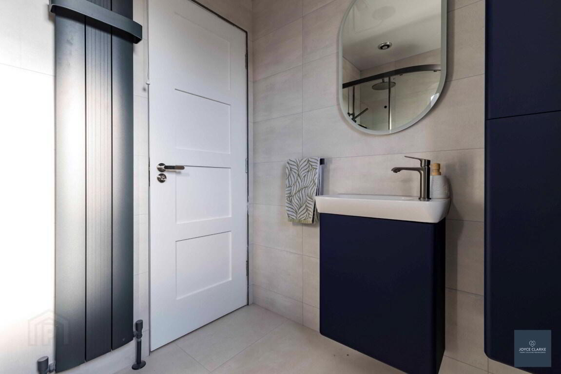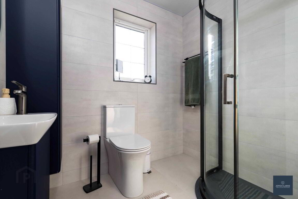 Impressively modernised Bathroom recently fitted, includes large shower quadrant with mains fed shower with rainfall showerhead and additional showerhead, back to wall dual flush WC, wall hung wash hand basin with vanity unit below and additional wall hung storage cabinet. Vertical radiator. PVC panelled ceiling. Recessed lighting with integrated extractor fan. Fully tiled walls and flooring.