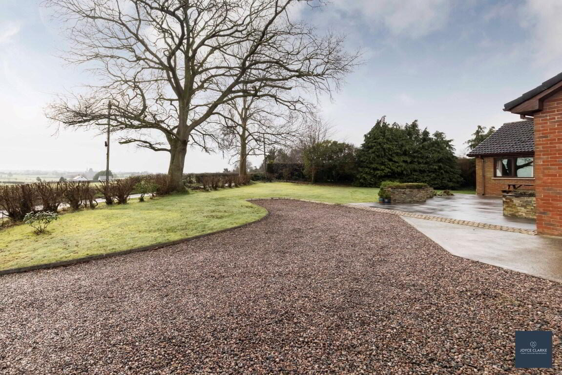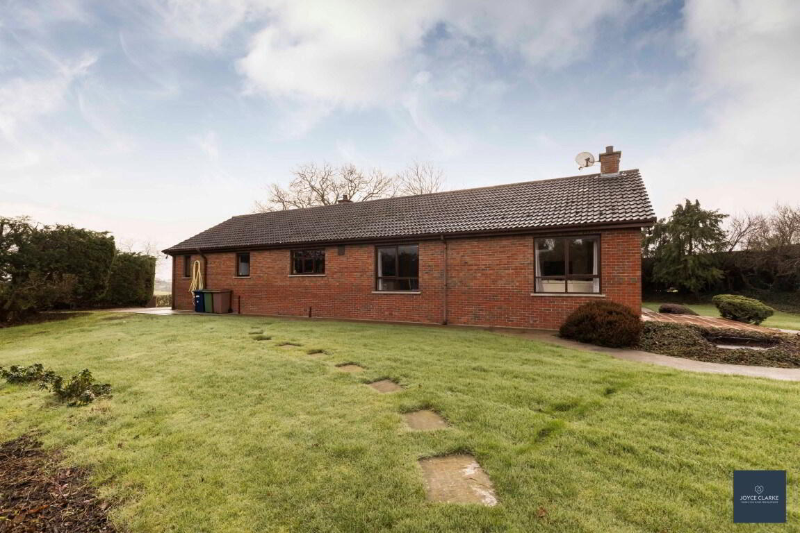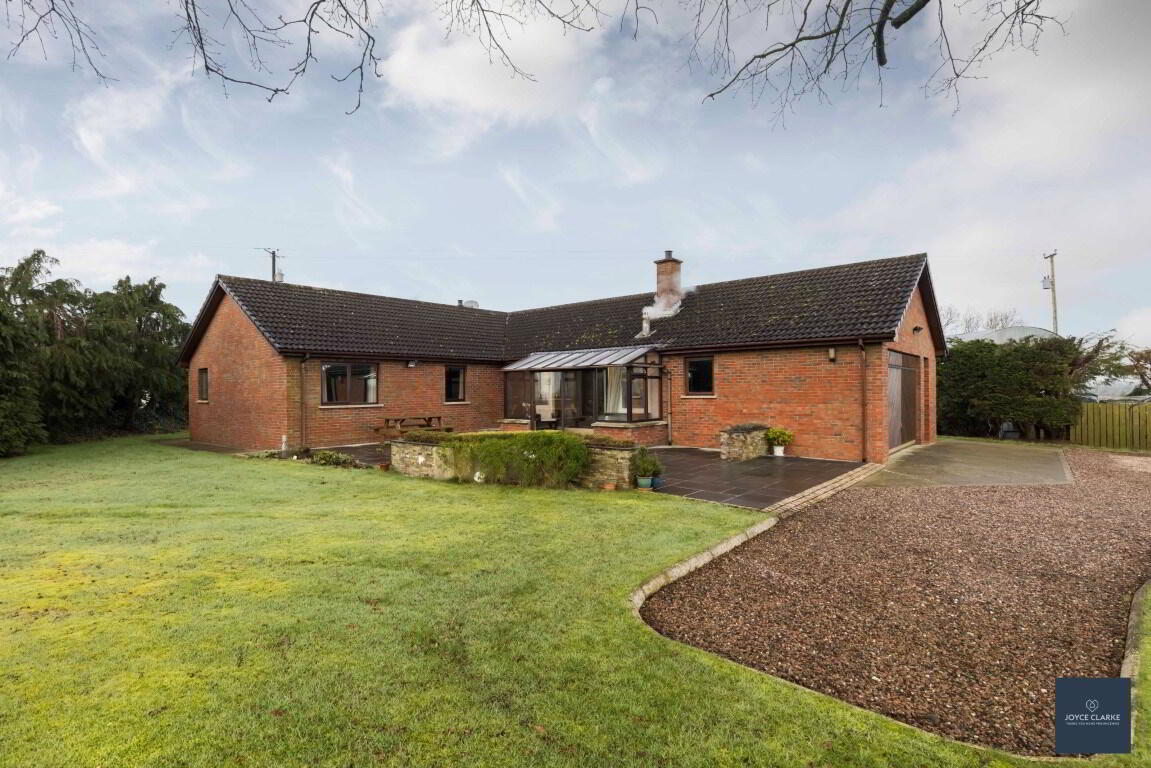 Brick pillared access to driveway laid in decorative stone to side of property giving ample parking. South facing paved patio area with decorative design, raised stones clad planter. Views over surrounding countryside towards Mourne Mountains and Slieve Gullion. Spacious lawn area. Concrete path surrounding property.
