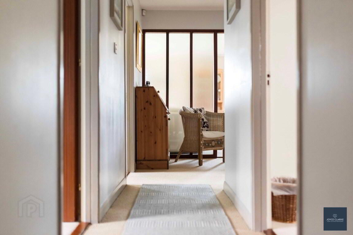 Wood entrance door with glazed panels to either side. Tiled flooring. Internal wood door with glazed panel and glazed panels to either side