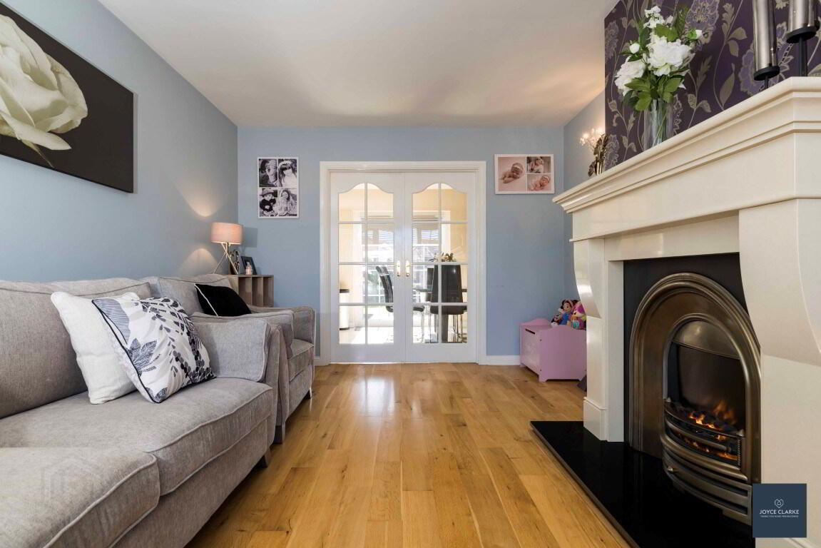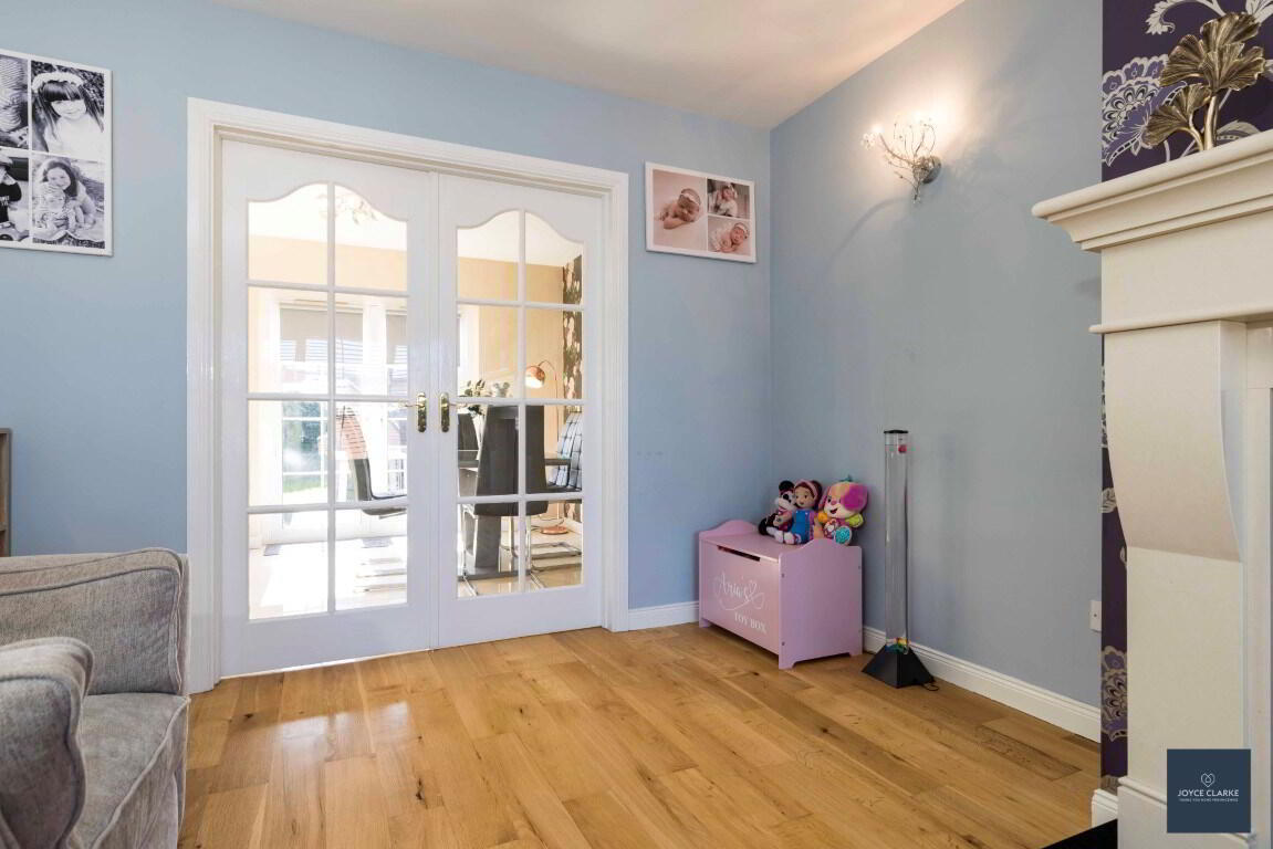 French aegean limestone fireplace with granite hearth and electric fire. Oak flooring. Bay window. French doors into kitchen / dining room. Double panel radiator. TV point.