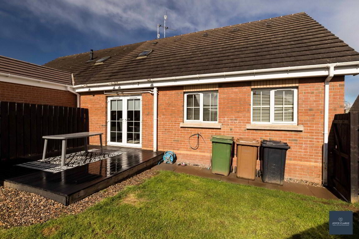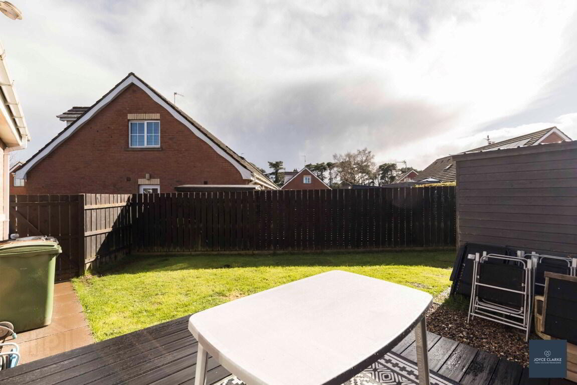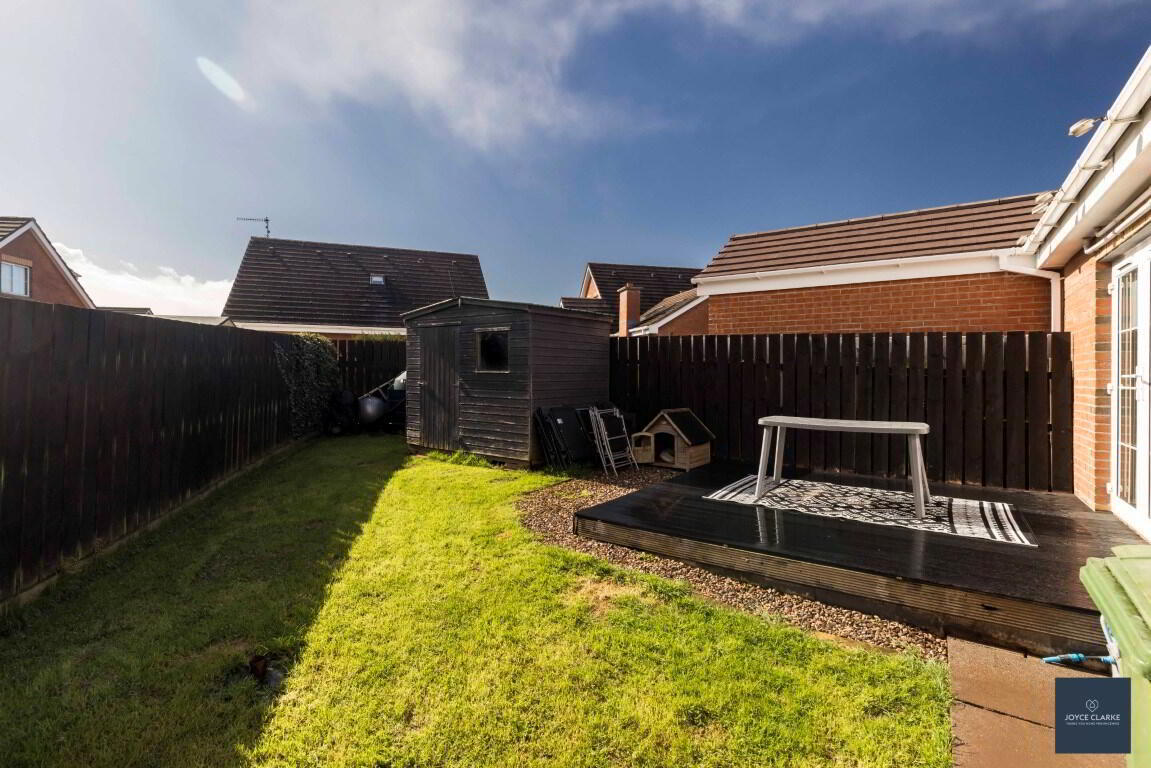 Gardens laid in lawn to front and rear. Decking area ideal for entertaining. Garden shed. Outside tap. Gate to driveway.