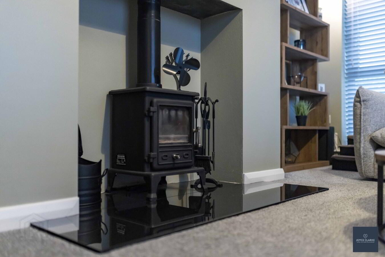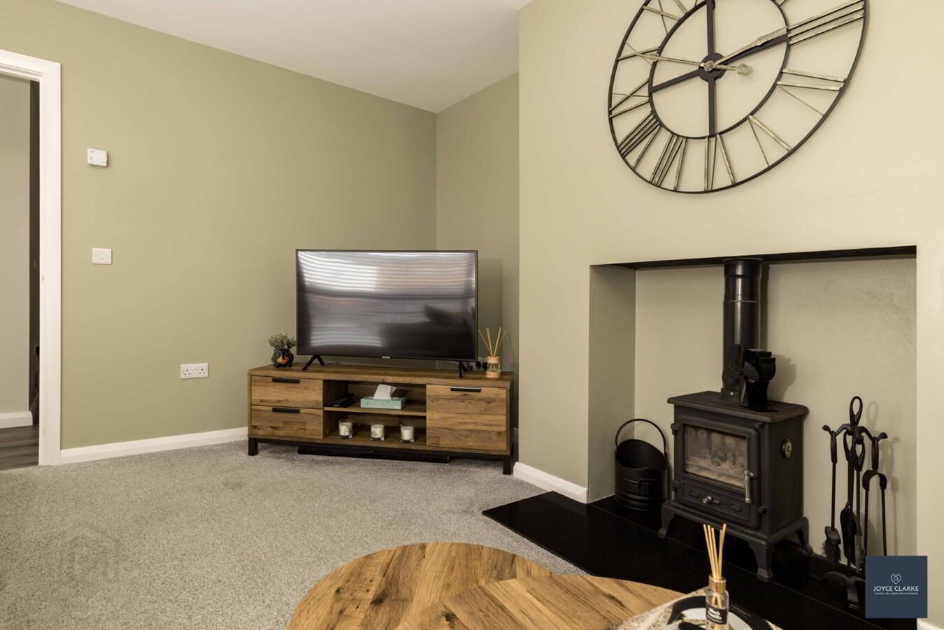 Dual aspect living room. Mutli fuel stove set on tiled hearth. Double panel radiator. TV point.