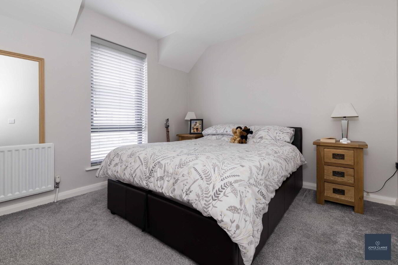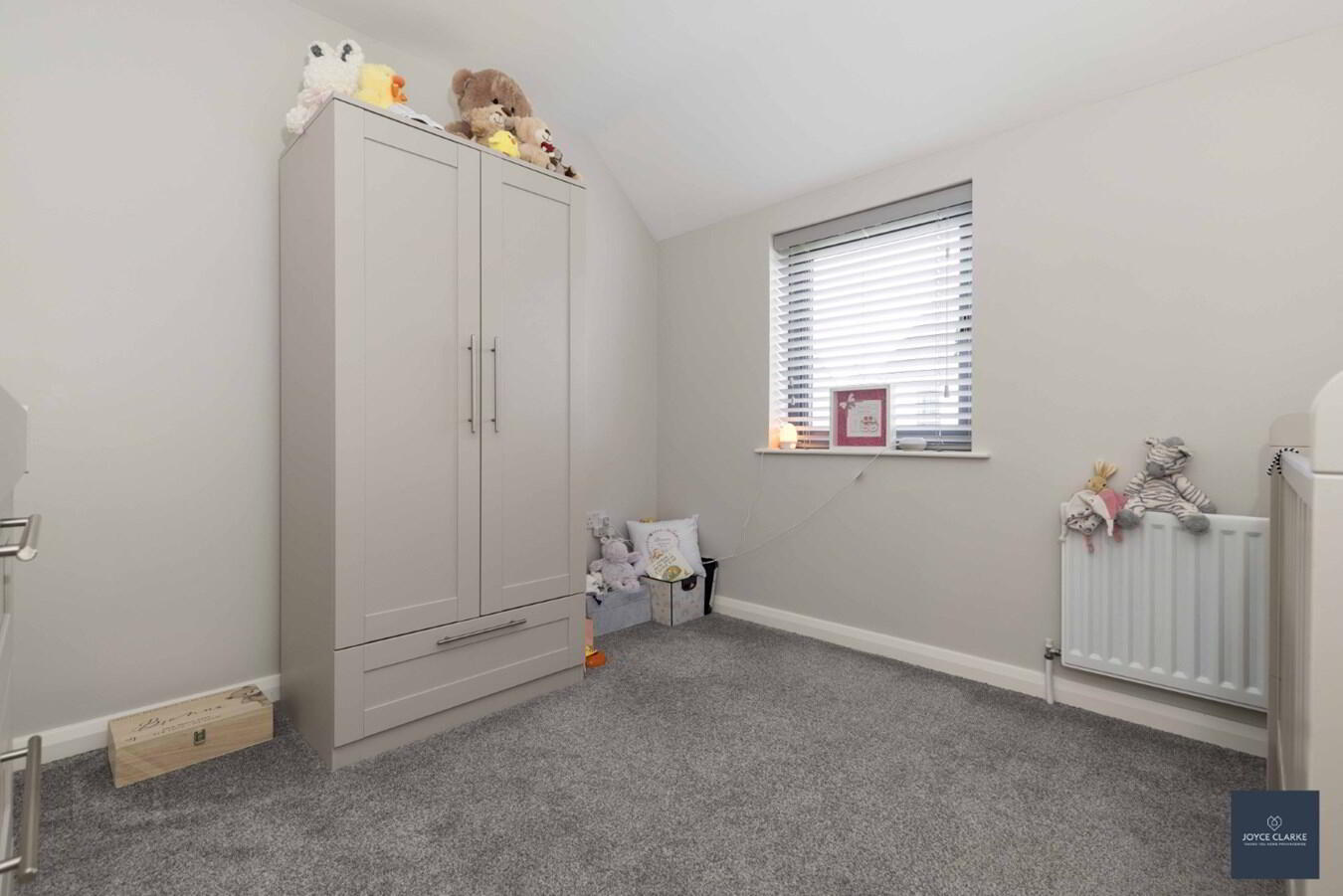 Front aspect double bedroom. Single panel radiator. Open plan fitted robes.