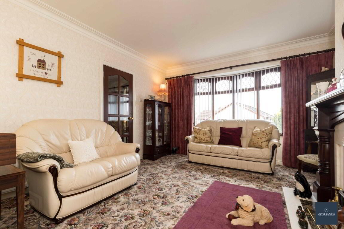 Front aspect reception room with feature fireplace with mahogany surround, marble back panel and hearth, electric insert. TV point. Two double panel radiators. Double French doors with glazed panels leading to conservatory.