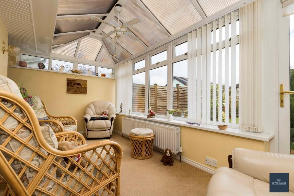 Up and over garage door. Pedestrian door giving access to conservatory at rear. Lighting and power points. Oil fired burner. Plumbed for washing machine. Access to attic