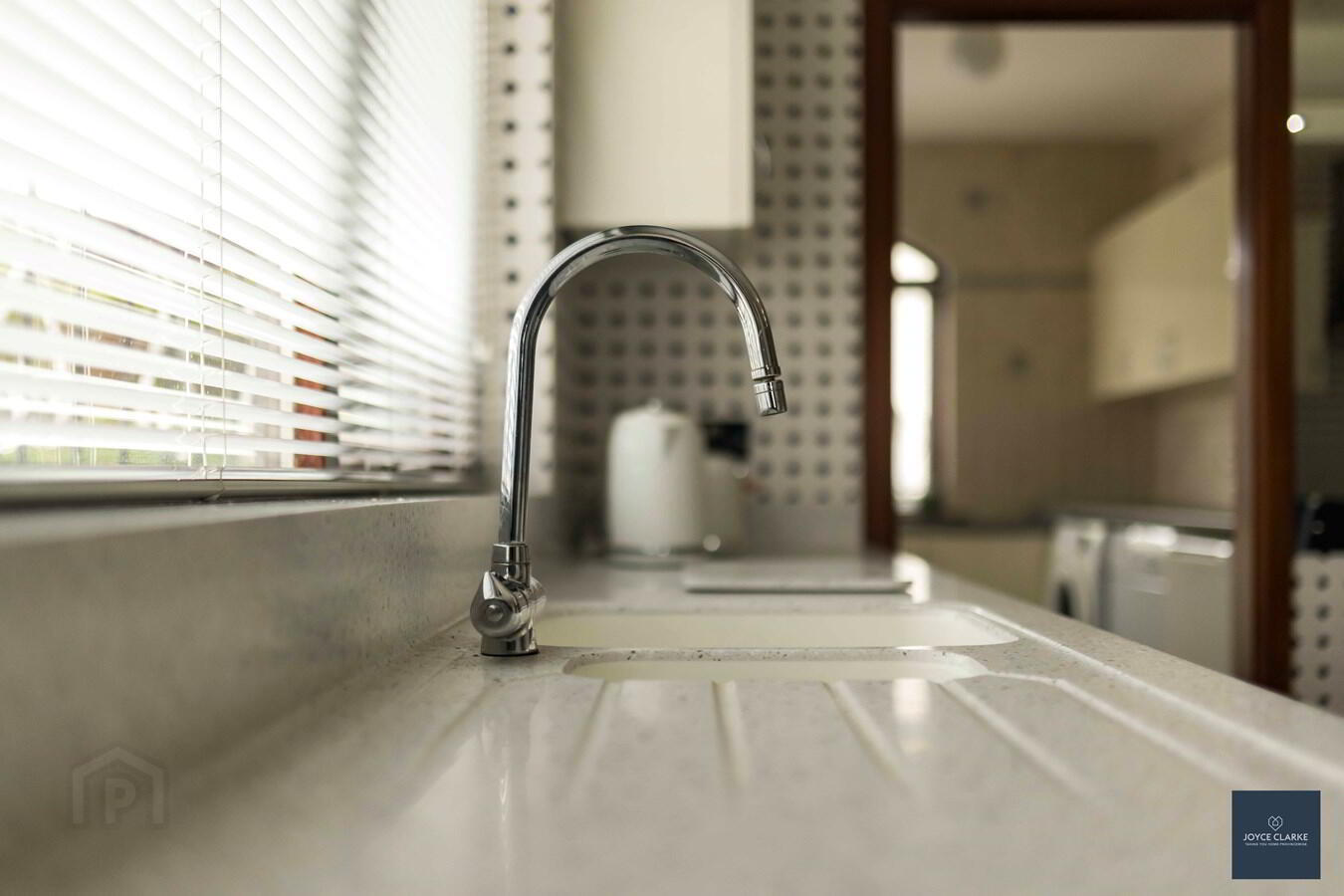 Excellent range of high and low level units including larder style units. Space for washing machine, freezer and dishwasher/ tumble dryer. Stainless steel sink and drainage unit. Tiled walls. Tile effect laminate flooring. Double panel radiator. Wood door with large glazed panel giving access to rear of property.