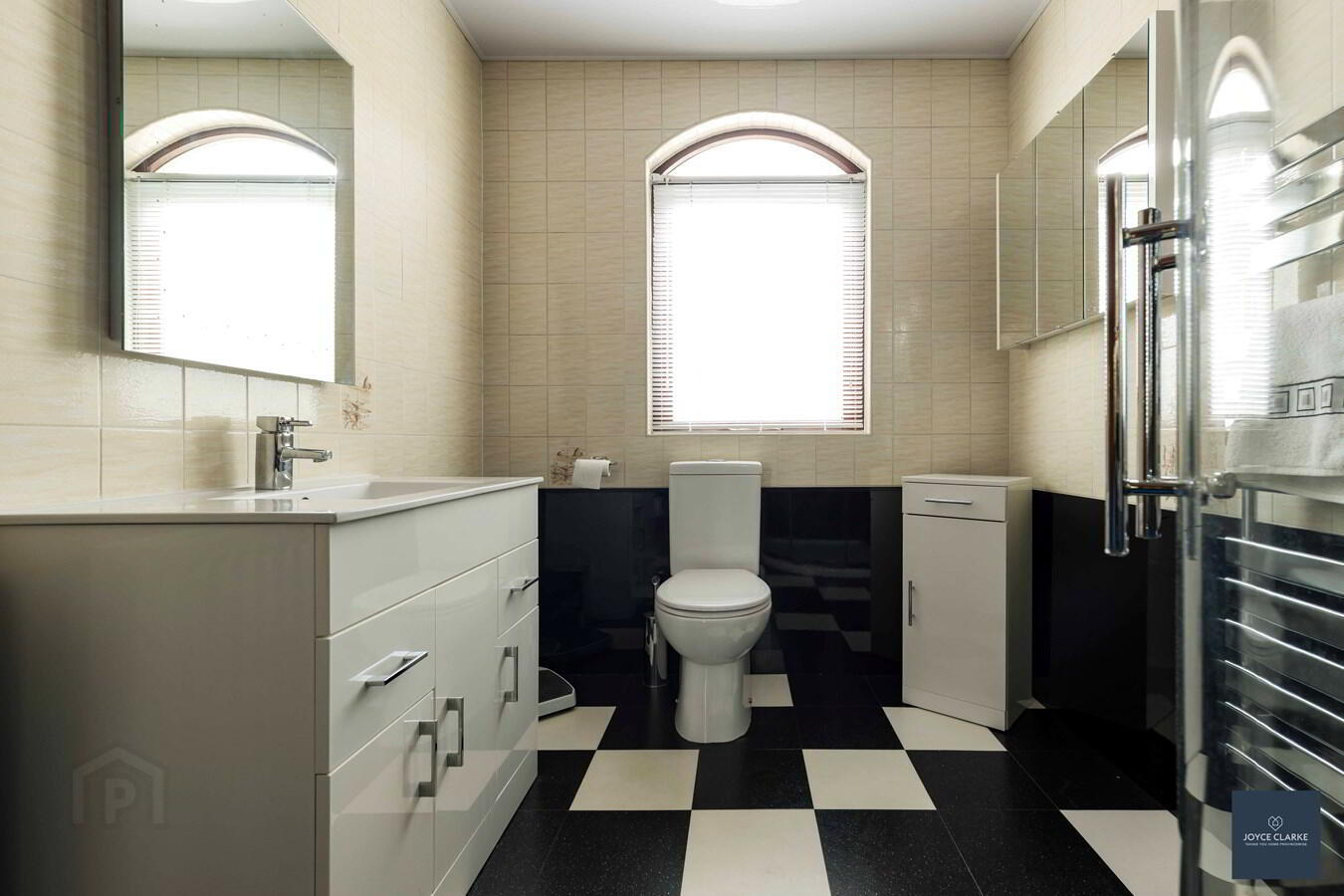 Access to cloakroom. Access to hotpress via two doors. Double panel radiator and single panel radiator. Access to attic