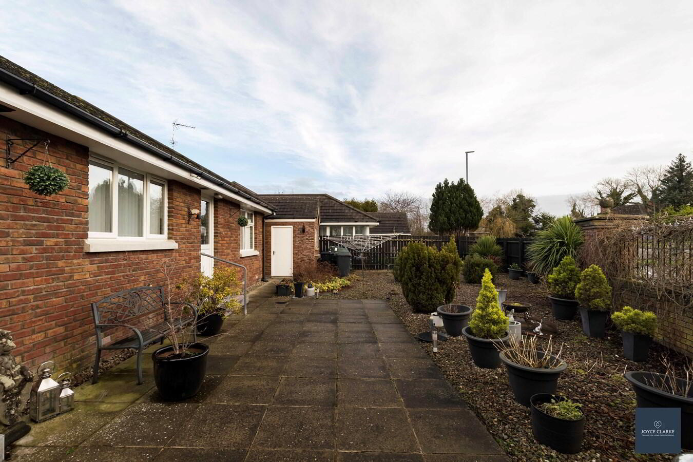Fully enclosed rear garden with gated access to either side. Large paved patio area. Majority of garden laid in decorative stones. Oil tank. Outside tap and lighting.