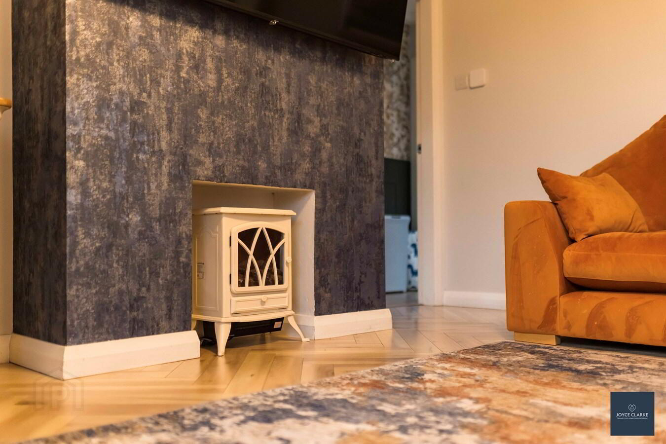 Front aspect reception room. Chimney breast with space for electric stove / stove. TV point for wall mounted TV. Wood effect laminate flooring. Double panel radiator. Nuaire Drimaster, Positive Input Ventilation system.