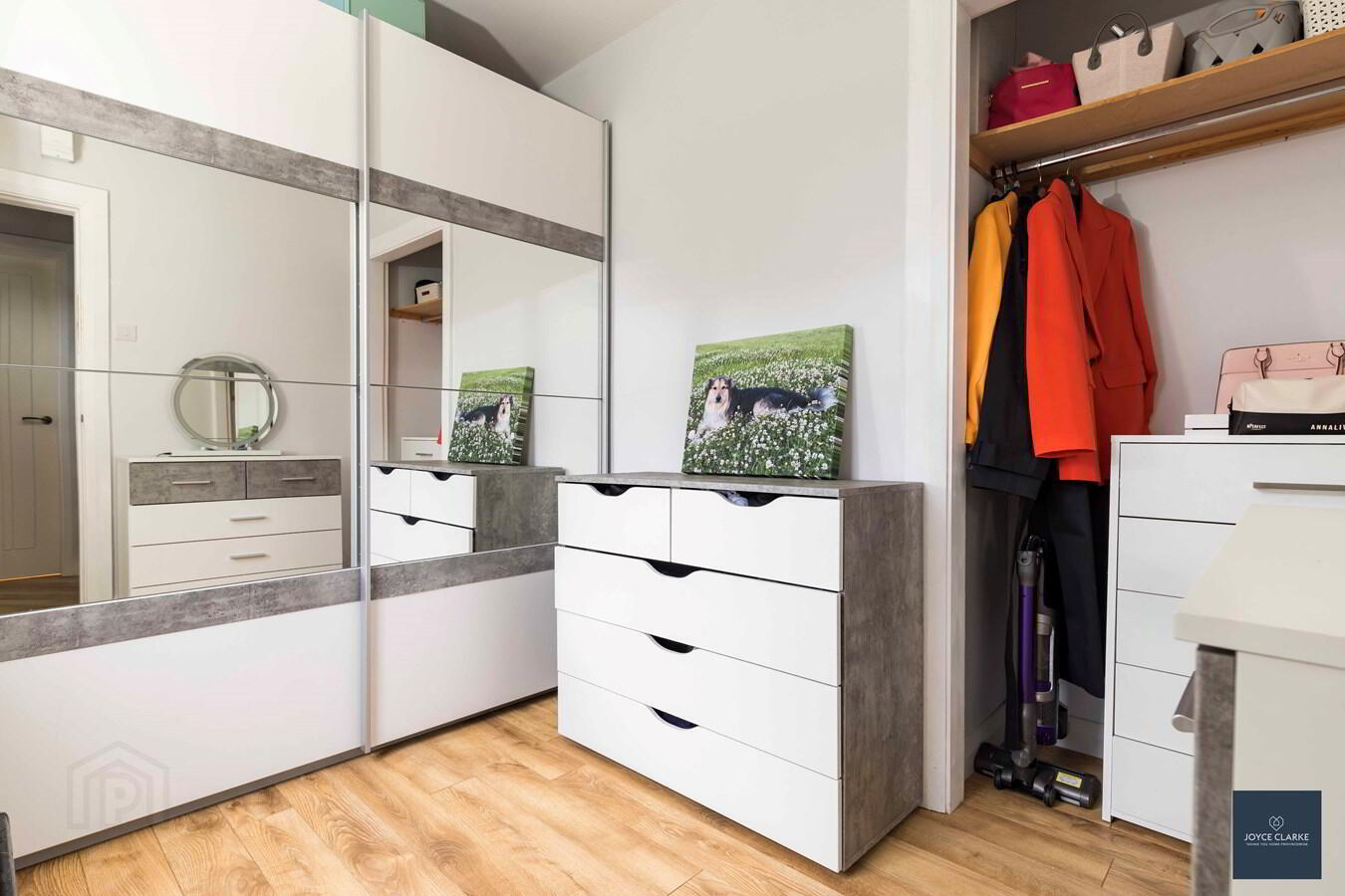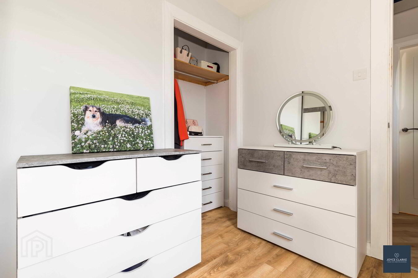 Front aspect bedroom. Wood effect laminate flooring. Single panel radiator. Built-in storage.
