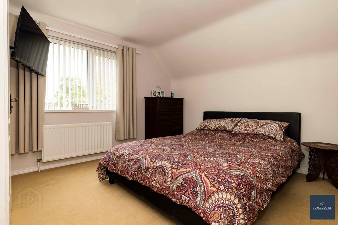 Side aspect double bedroom. Built-in double door slide wardrobe with range of clothes rails and shelving. Fitted double door wardrobe. Double panel radiator. Access to attic. Access to storage in eaves.