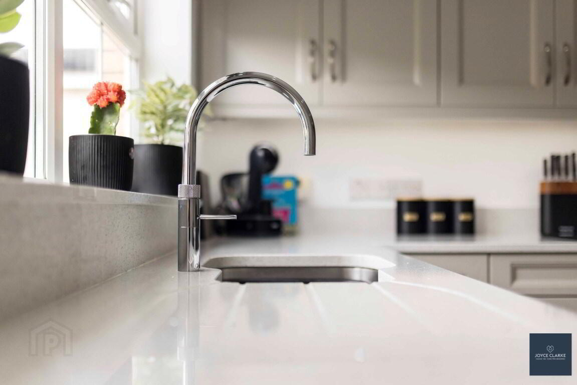 The home itself is immaculately presented and offers four double bedrooms, master with en suite shower room, family bathroom with separate shower and bath on the first floor. Enjoy family time in your choice of reception rooms to include gracious living room to the front, sunroom, and a third lounge which may also be considered as a dining room. The stylish modern fitted kitchen has excellent storage, contrasting island, quartz work surfaces and an array of integrated appliances, A WC completes the ground floor. Every detail in this fine home have been well considered, including beautiful wall panelling and attractive colour schemes that work well with the abundance of natural light that floods throughout the property. Step outside and the low maintenance garden is fully enclosed, with the detached garage and utility adjacent. There is excellent parking via the extensive tarmac driveway to the front and rear suitable for multiple cars.