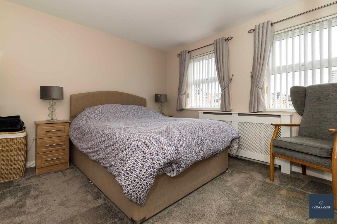 Rear aspect double bedroom. Fitted double door slide wardrobe with mirrored doors. TV point. Double panel radiator.