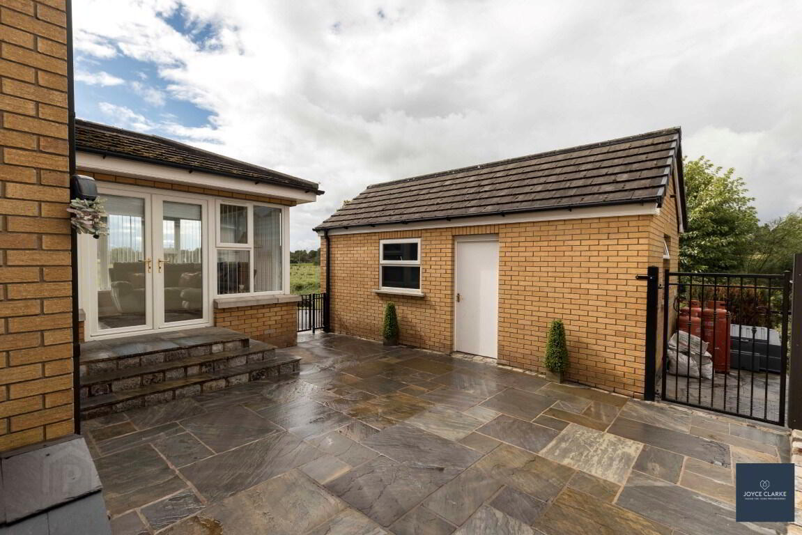 Fully enclosed paved patio area with gated access to front, side and rear. Floodlighting. Outside tap. Oil tank and oil fired burner.