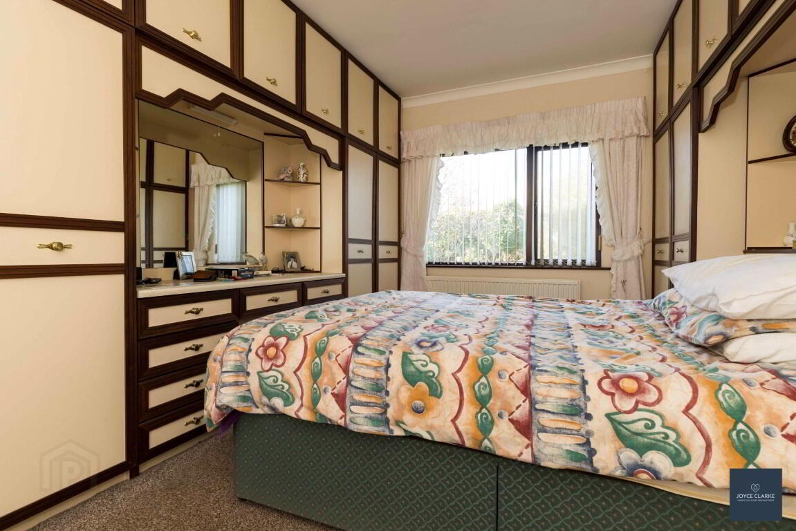 The location is ideal with the towns of Banbridge and Lurgan within easy reach, and the charming village of Donaghcloney just a few minutes away. This attractive bungalow comprises of a large living room with panoramic views from the front aspect. The open plan kitchen dining has a great range of storage units complimented by integrated appliances. There is plenty of room for a dining table and sofa making this a sociable area to entertain family and friends. There are three well proportioned bedrooms, the master having an excellent range of built in furniture providing super storage. A family bathroom completes this well maintained property. Externally there is a private garden laid in lawn with mature plants and trees, and attractive estate railing to the front. There is a detached garage to one side, and a generous plot size making this a highly attractive holding for you to consider. The sale is chain free for your convenience.