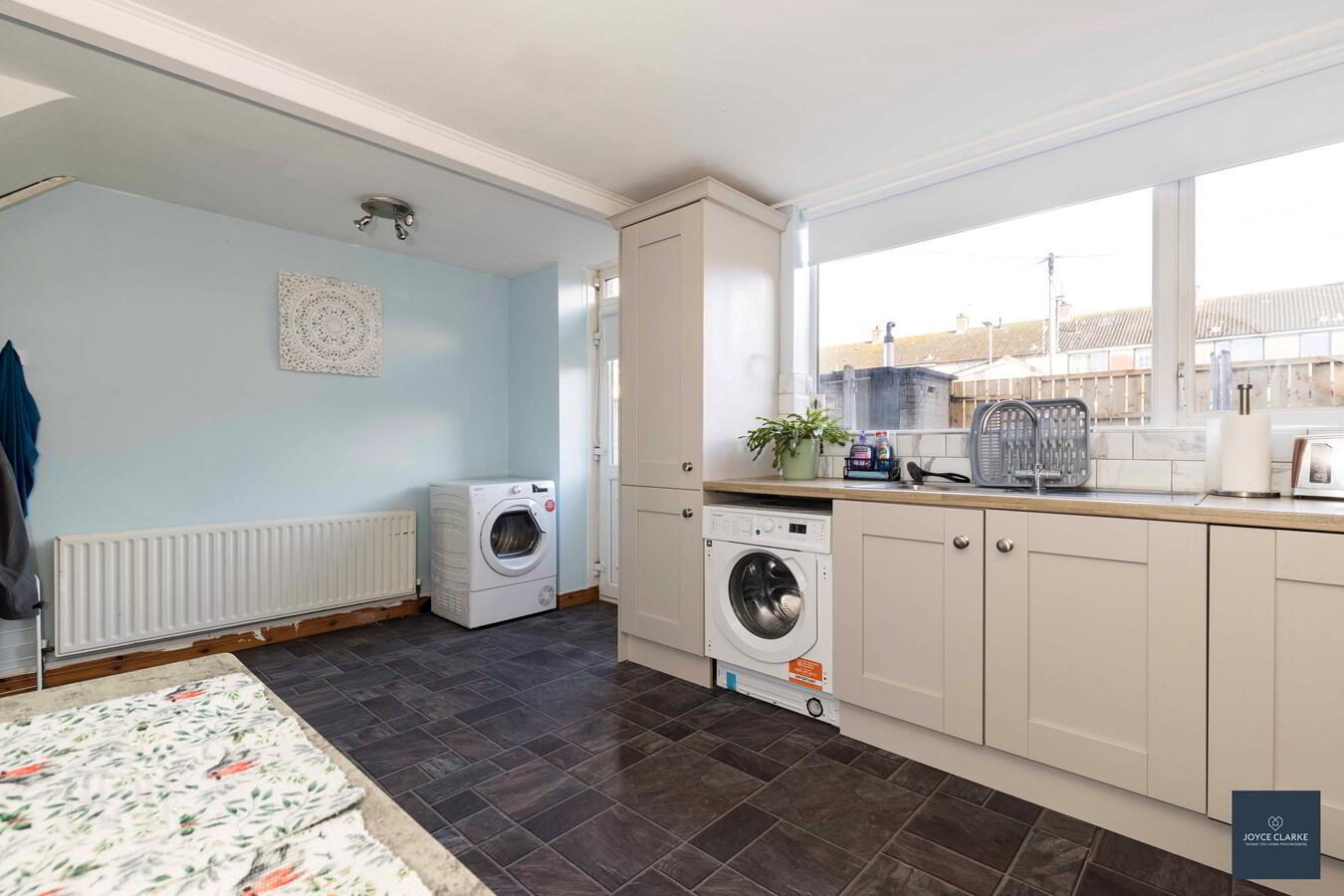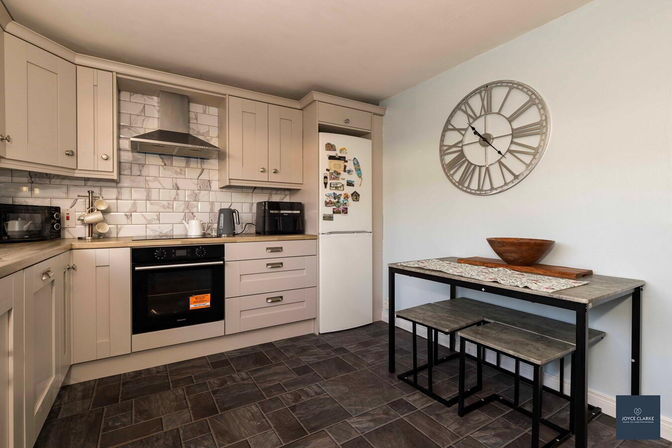 Excellent range of modern kitchen cabinets (recently fitted) including larder style unit and saucepan drawers. Tiled splashback. Range of appliances include electric oven, four ring electric hob with stainless steel extractor canopy above and integrated dishwasher. Space for fridge freezer and washing machine. Stainless steel sink and drainage unit. Tile effect laminate flooring. Double panel radiator. UPVC door with glazed panel giving access to rear of property.