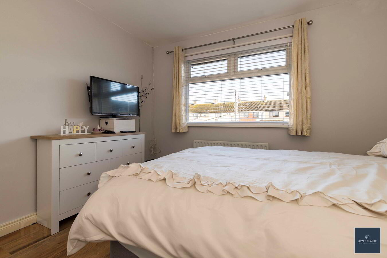 Front aspect double bedroom. Built-in double door wardrobe. Single panel radiator. Wood effect laminate flooring.