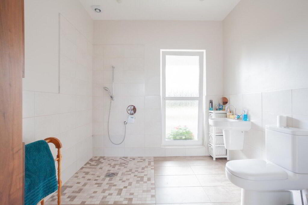 ENSUITE/WET ROOM 4.46m x 2.58m (14' 8" x 8' 6") Wetroom with tiled walls to shower area. Mains fed shower. Wash hand basin with half pedestal and dual flush WC. Tiled flooring. Recessed lighting and extractor fan. Changing / dressing area with tiled flooring.