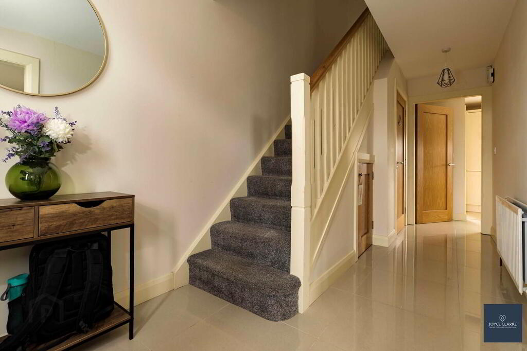 ENTRANCE Composite entrance door with glazed panel. Tiled flooring. Double panel radiator. Understairs storage area.