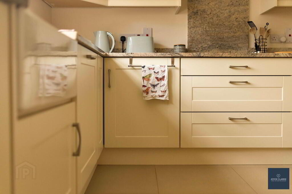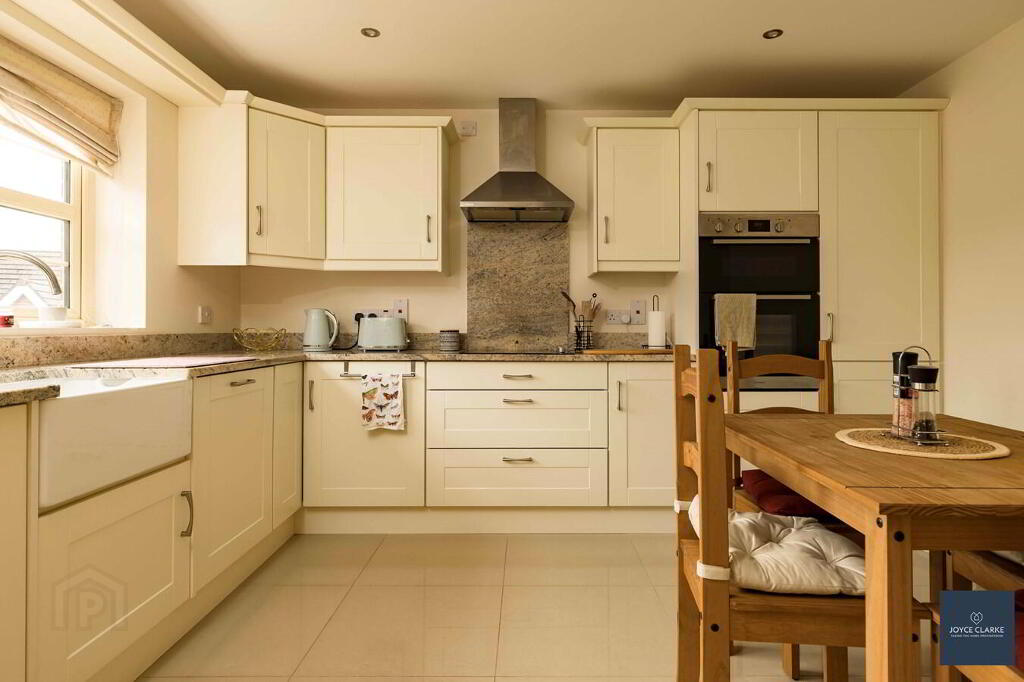 KITCHEN DINING 3.77m x 3.97m (12' 4" x 13' 0") Cream country style kitchen with an excellent range of high and low level kitchen units with luxurious features, including a Belfast sink and granite worktop. Range of integrated kitchen appliances, including eye-level oven and grill, ceramic four ring hob, fridge-freezer, dishwasher and stainless steel extractor hood. Recessed lighting.