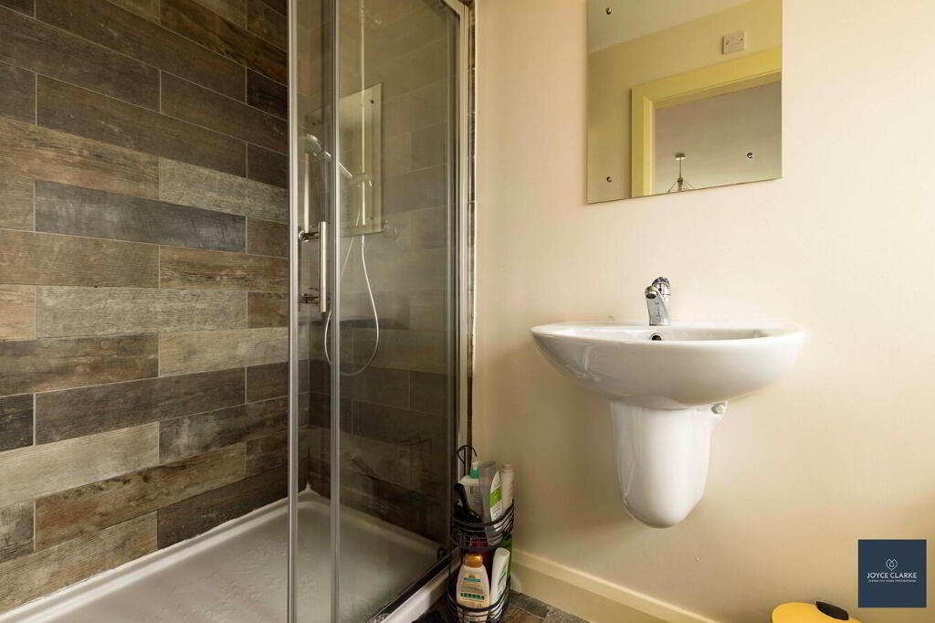 EN SUITE 2.81m x 1.19m (9' 3" x 3' 11") Three piece bathroom suite comprising of walk-in shower enclosure with waterfall shower head, floating sink and dual flush WC. Double panel radiator. Extractor fan. Window.