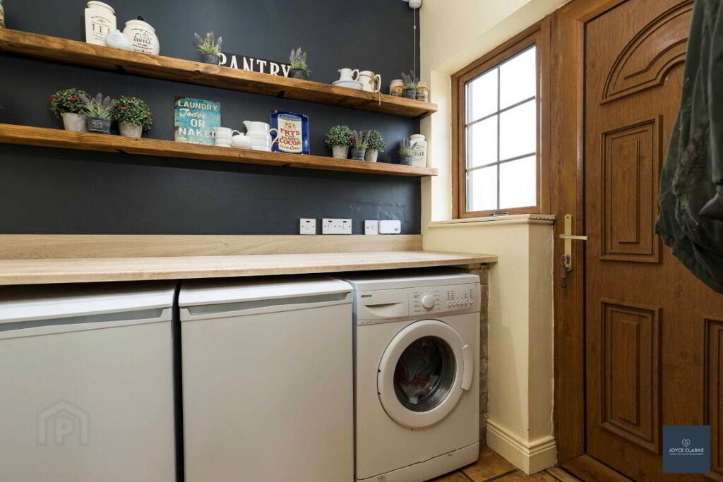 UTILITY ROOM 1.42m x 2.34m (4' 8" x 7' 8") Space for washing machine and tumble dryer and freezer. Recessed shelving. uPVC door to rear. Single panel radiator. Tiled floor. uPVC door to rear.