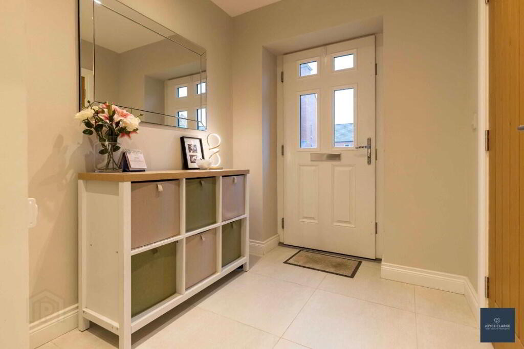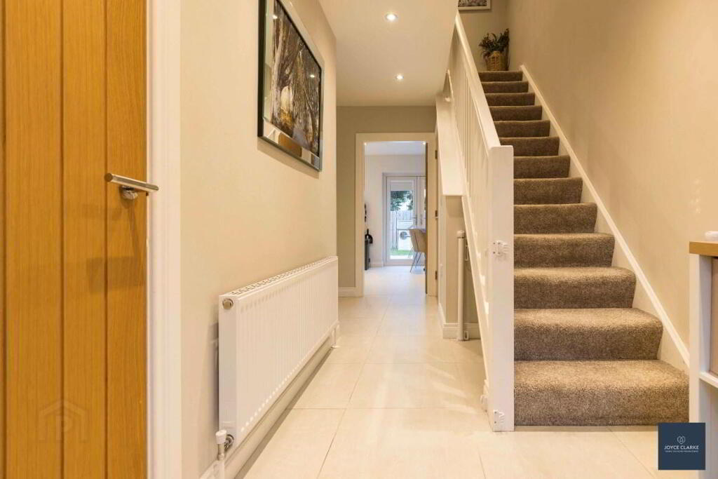 ENTRANCE HALL Composite entrance door with glazed panel. Tiled flooring. Single panel radiator. Recessed lighting. Open storage under stairs.