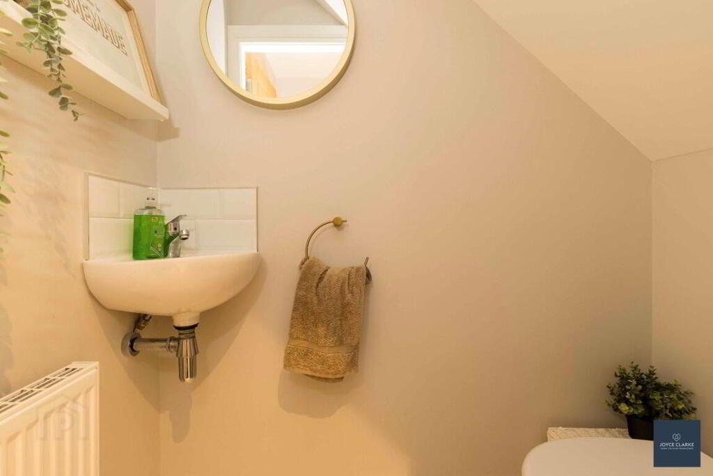 GROUND FLOOR WC 0.93m x 1.66m (3' 1" x 5' 5") Dual flush WC and corner wash hand basin. Single panel radiator. Tile flooring and splashback. Extractor fan.