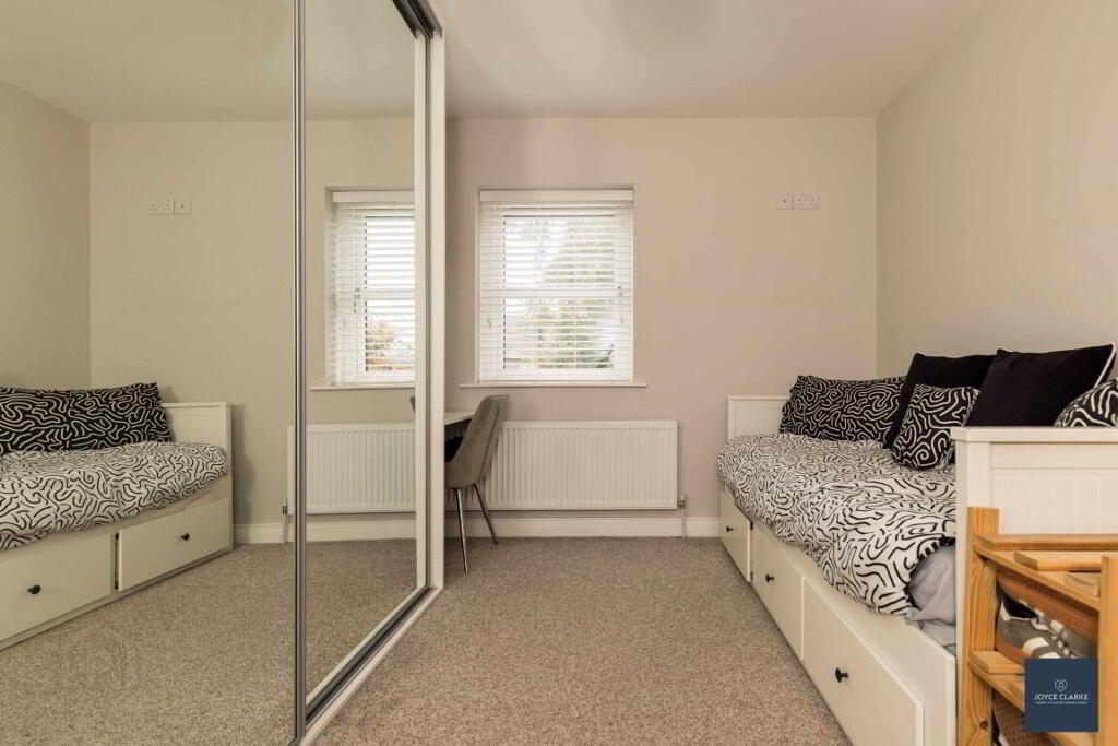 BEDROOM TWO 2.83m x 3.8m (9' 3" x 12' 6") (MAX) Rear aspect double bedroom. Fitted three door slide wardrobe with mirrored doors including a range of clothes rails, shelving and drawers. TV point for wall mounted TV. Single panel radiator.