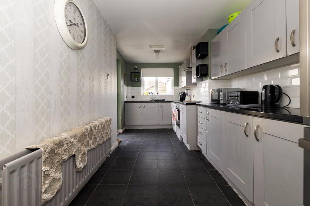 KITCHEN DINING 2.15m x 6.22m (7' 1" x 20' 5") Extensive range of high and low level grey storage units. Integrated oven, four ring ceramic hob with extractor over. Stainless steel circular sink with mixer tap and drainer. Tiled floor and splashback. Double panel radiator. Double doors into snug/bedroom four. Part glazed uPVC door to rear.