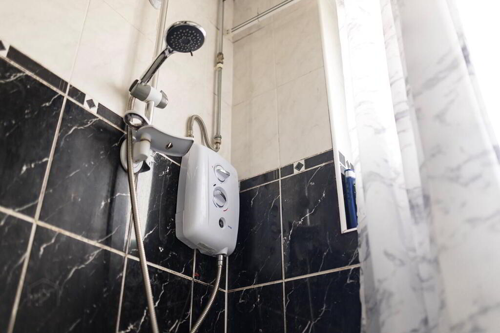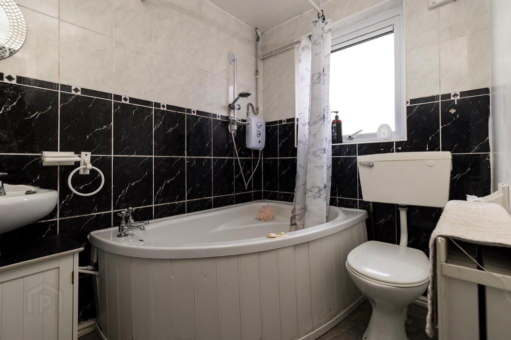FAMILY BATHROOM 1.67m x 2.40m (5' 6" x 7' 10") Corner jacuzzi style bath with Triton electric shower over. Pedestal style sink, WC. Tiled floor part tiled walls. Window. Extractor. Double panel radiator.