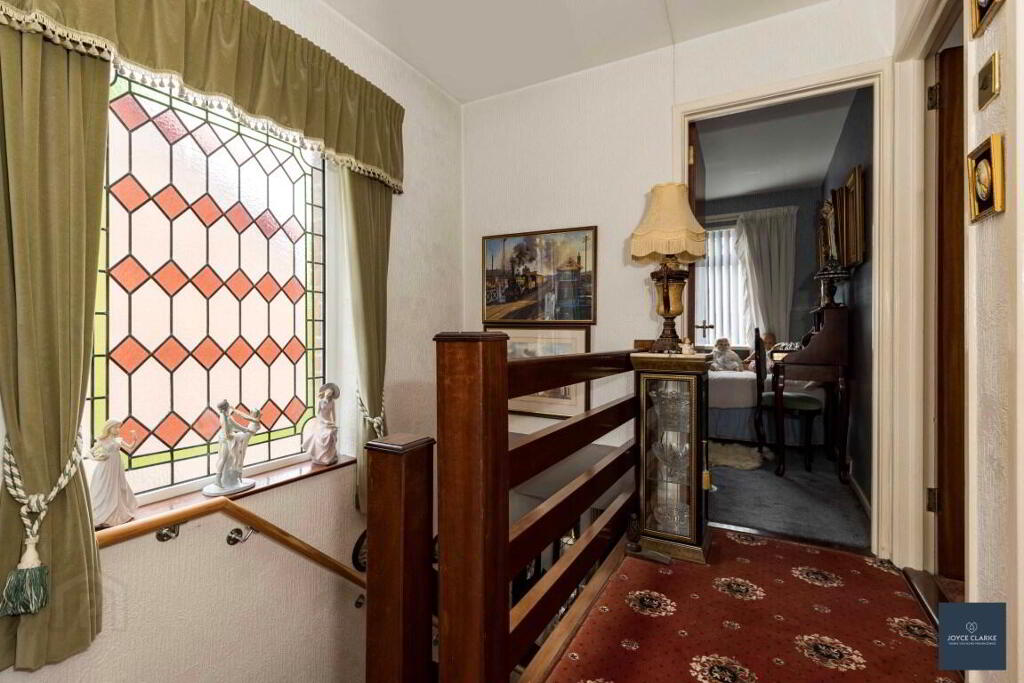 FIRST FLOOR LANDING Ornate stain glass window.