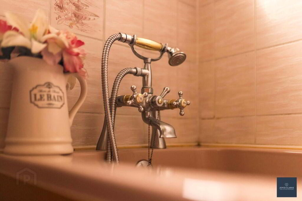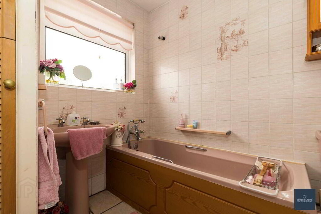 FAMILY BATHROOM 2.10m x 2.28m (6' 11" x 7' 6") Fully tiled suite with WC, pedestal style sink, bath with telephone shower head attachment. Hotpress. Window. Single panel radiator. Access to roofspace.
