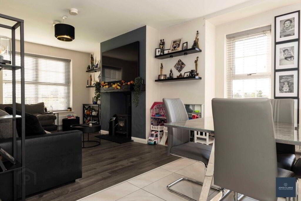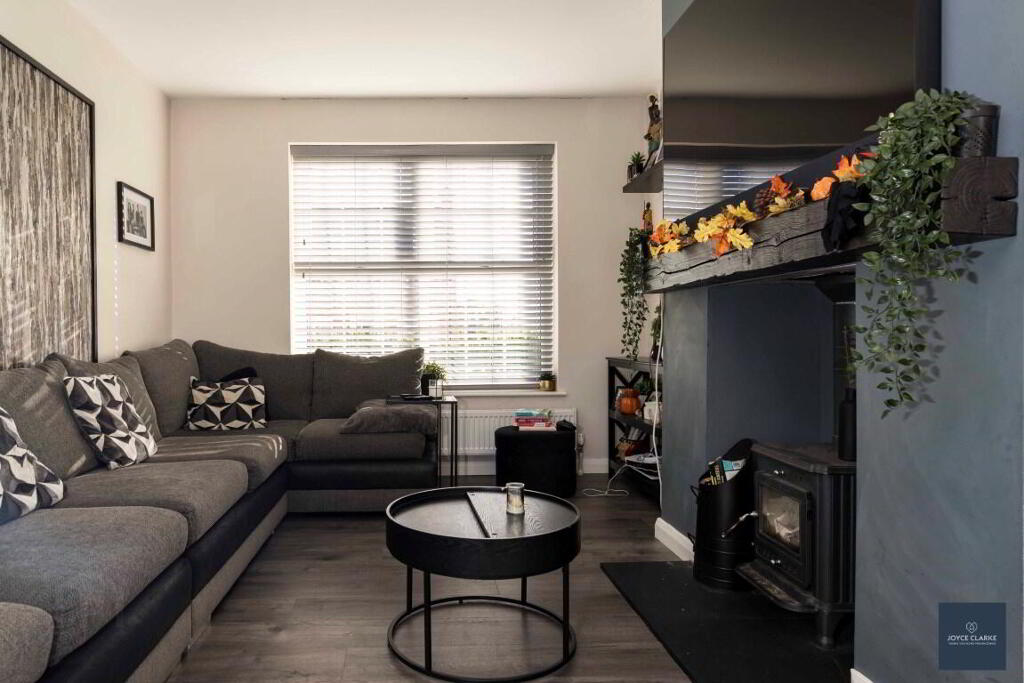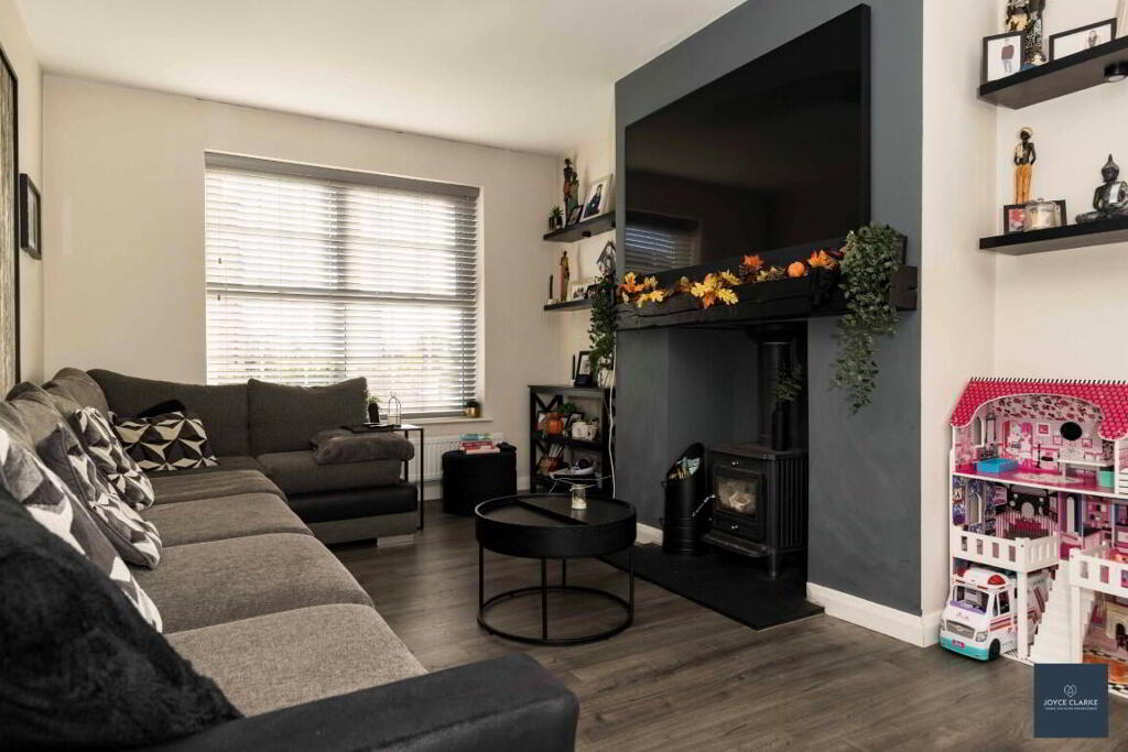 LIVING ROOM 3.23m x 4.36m (10' 7" x 14' 4") Front aspect reception room opening to kitchen diner. Feature fireplace with stove and slate tiled hearth and wood mantel. Low-level double panel radiator.