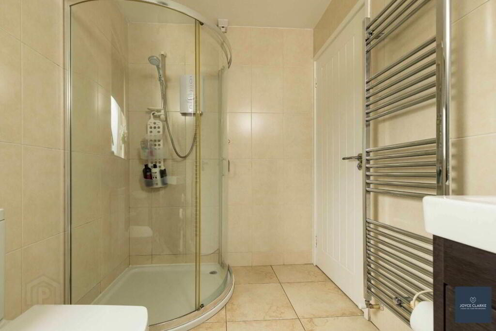 FAMILY BATHROOM 1.79m x 3.5m (5' 10" x 11' 6") Excellent four piece bathroom suite comprising of freestanding bath with centre taps and shower head attachment, back to wall dual flush WC, oversized wash hand basin with vanity unit below and separate shower quadrant with electric shower. Heated towel rail. Fully tiled walls and flooring. Extractor fan.