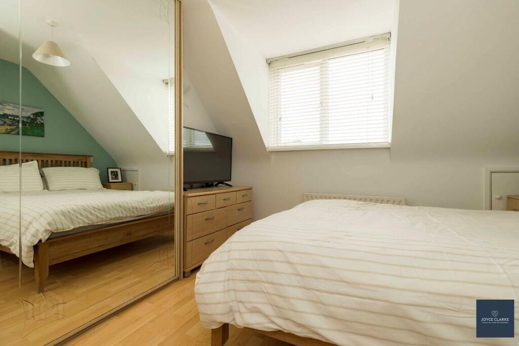 MASTER BEDROOM 3.57m x 3.34m (11' 9" x 10' 11") (MAX) Front aspect double bedroom. Fitted two door slide wardrobe with mirrored door. TV point. Single panel radiator. Wood effect laminate flooring.