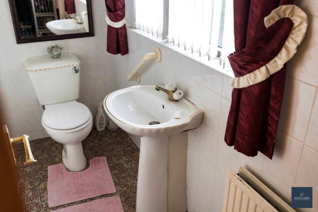 FAMILY BATHROOM 2.03m x 2.40m (6' 8" x 7' 10") (MAX) Fully tiled bathroom. Three piece white suite, comprising of bath with shower over and shower screen. WC. Pedestal style sink with mixer tap. Double panel radiator. Window.