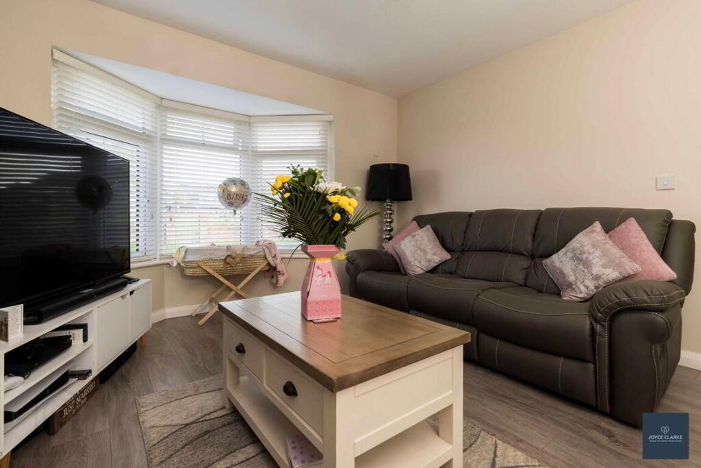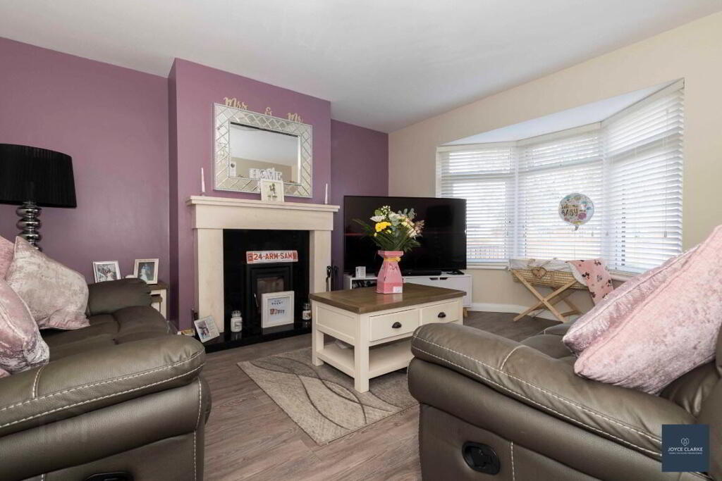 LIVING ROOM 4.06m x 4.17m (13' 4" x 13' 8") Front aspect reception room with feature bay window. Multi fuel cassette stove with stone surround granite back panel and hearth. TV point. Wood effect laminate flooring. Double panel radiator.