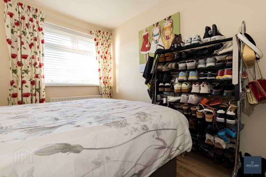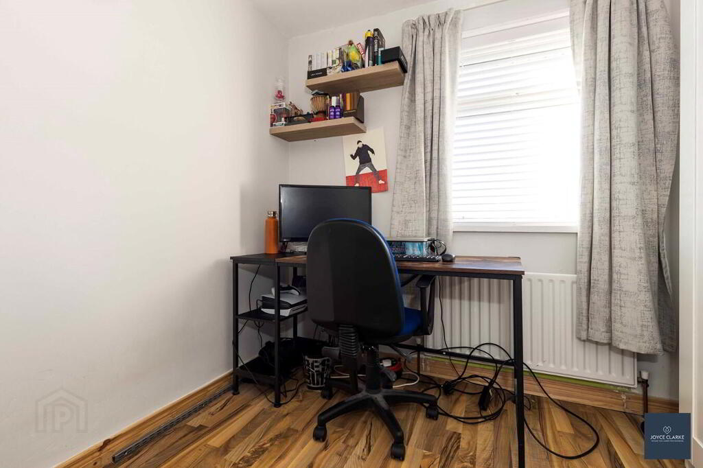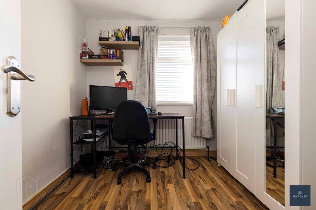 BEDROOM THREE 2.53m x 2.72m (8' 4" x 8' 11") Front aspect bedroom. Built-in storage. Single panel radiator. Wood effect laminate flooring.
