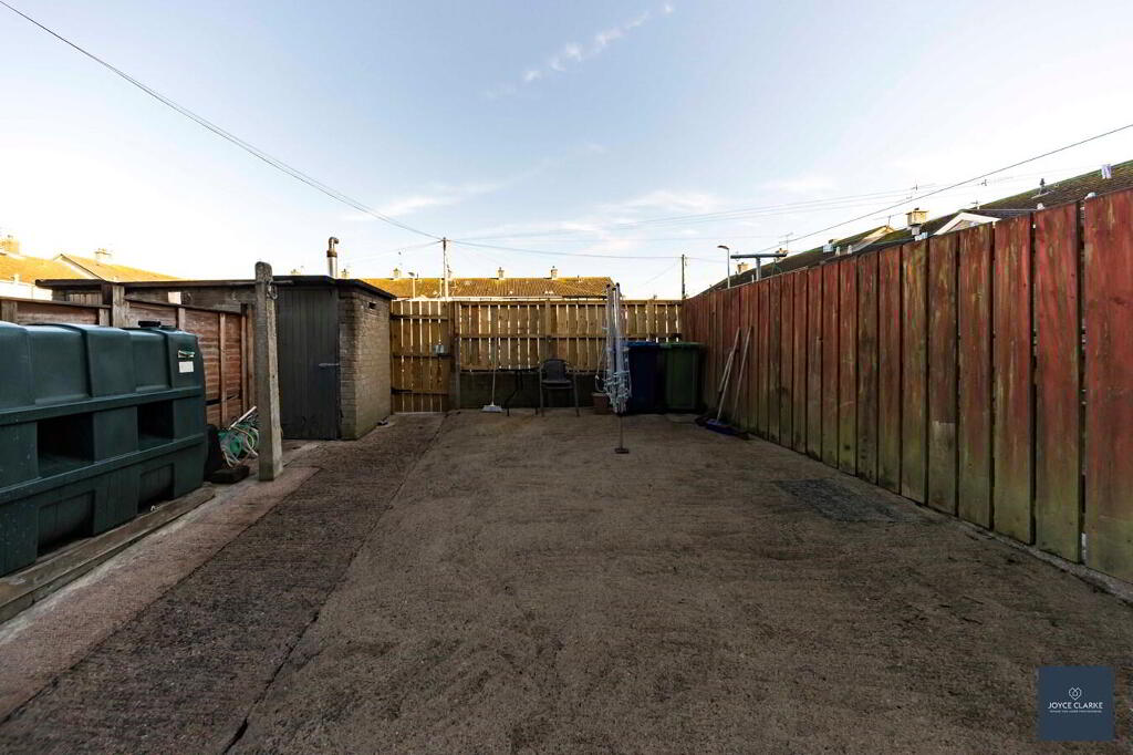 REAR Fully enclosed low maintenance rear laid in concrete with gated access. Block built boiler house with oil fired burner. Outside tap.