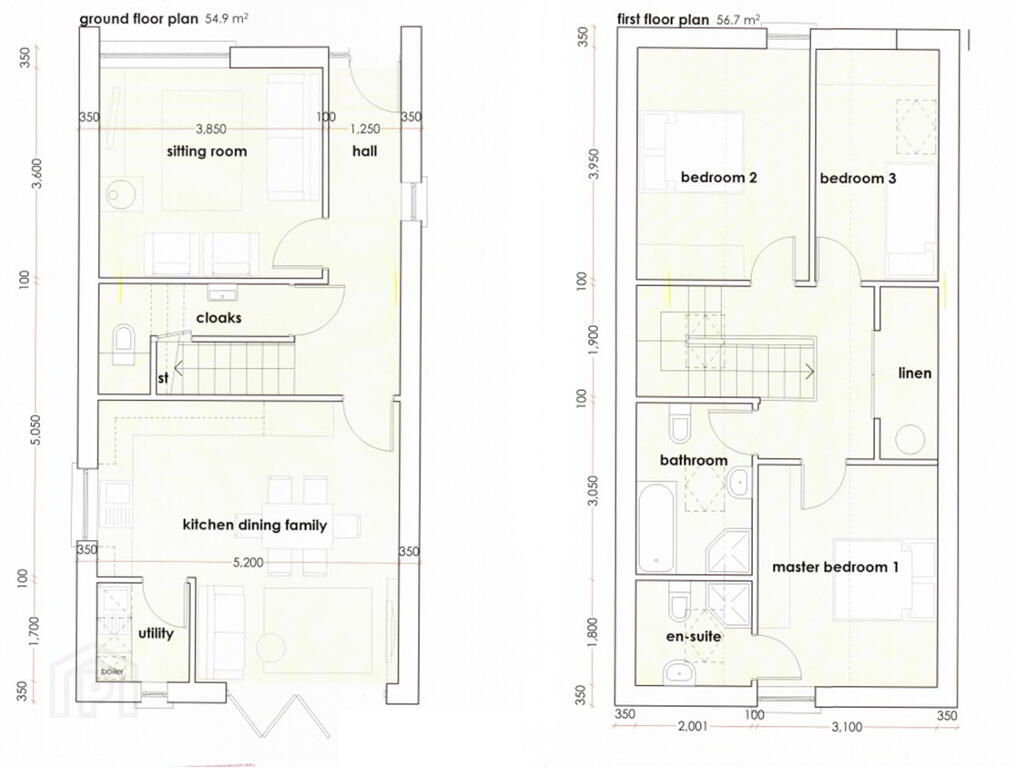 The approved dwelling includes living room, utility room, downstairs WC and open plan kitchen dining family room. The first floor comprises three bedrooms, master with ensuite and family bathroom.