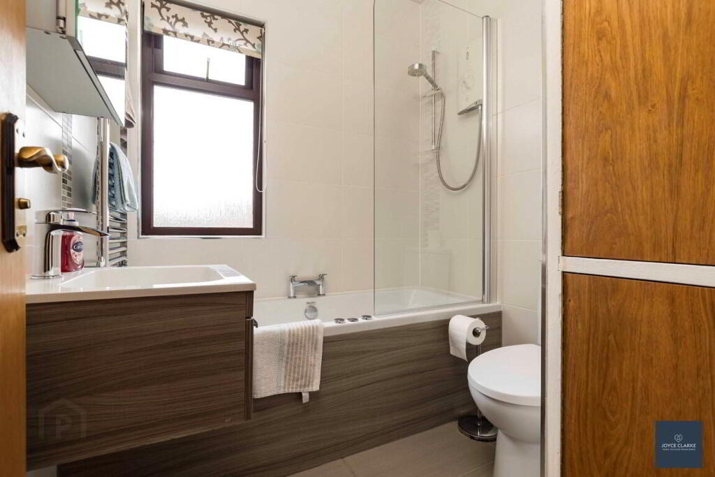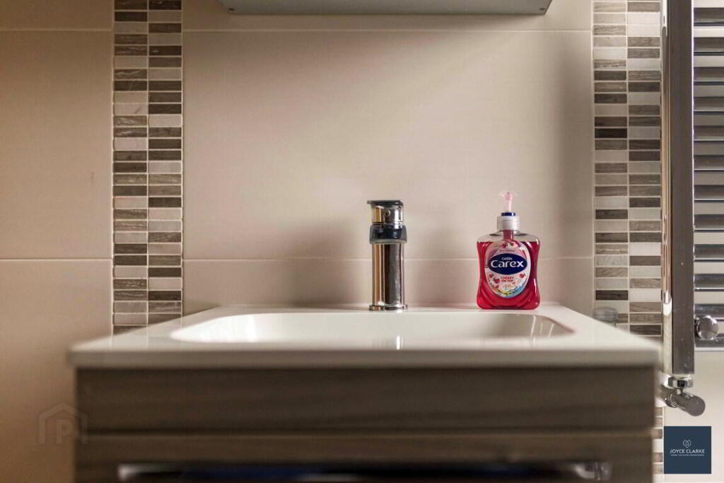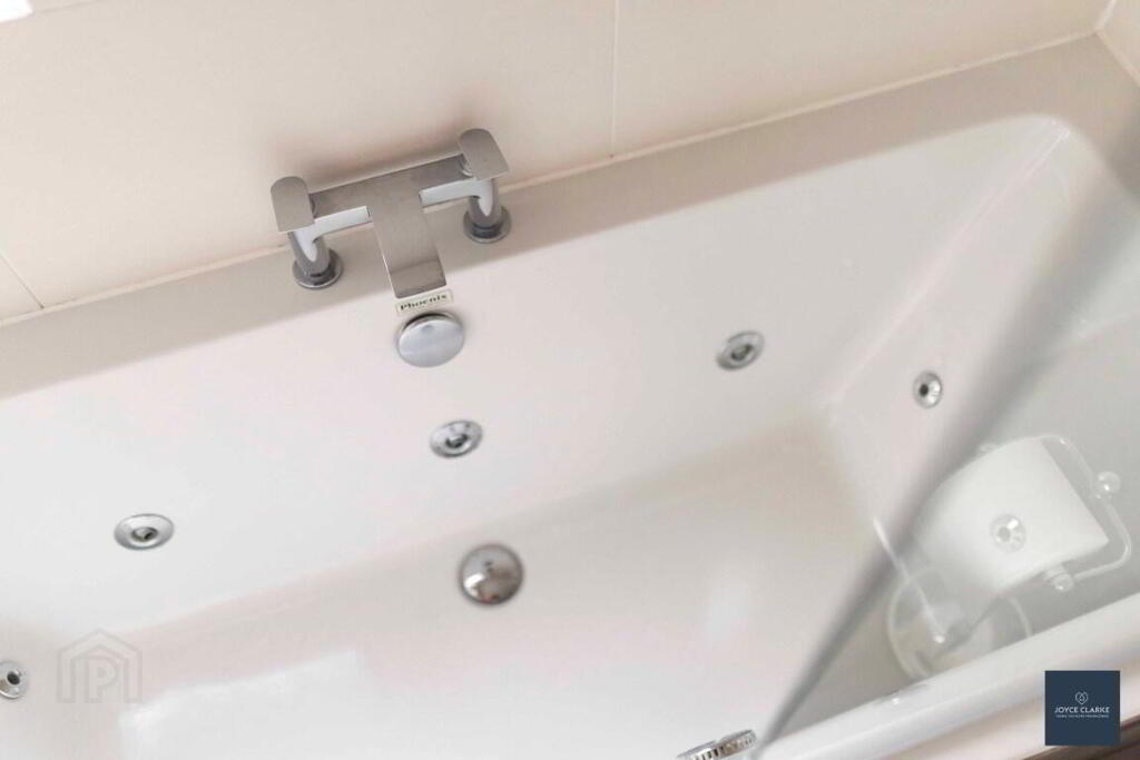 BATHROOM 1.96m x 1.80m (6' 5" x 5' 11") Jacuzzi style bath with centre mixer tap and MIRA spot power shower over. Floating sink with mixer tap and vanity unit below. Back to wall dual flush WC. Heated towel rail. Recessed lighting. Hotpress. Access to roof space.