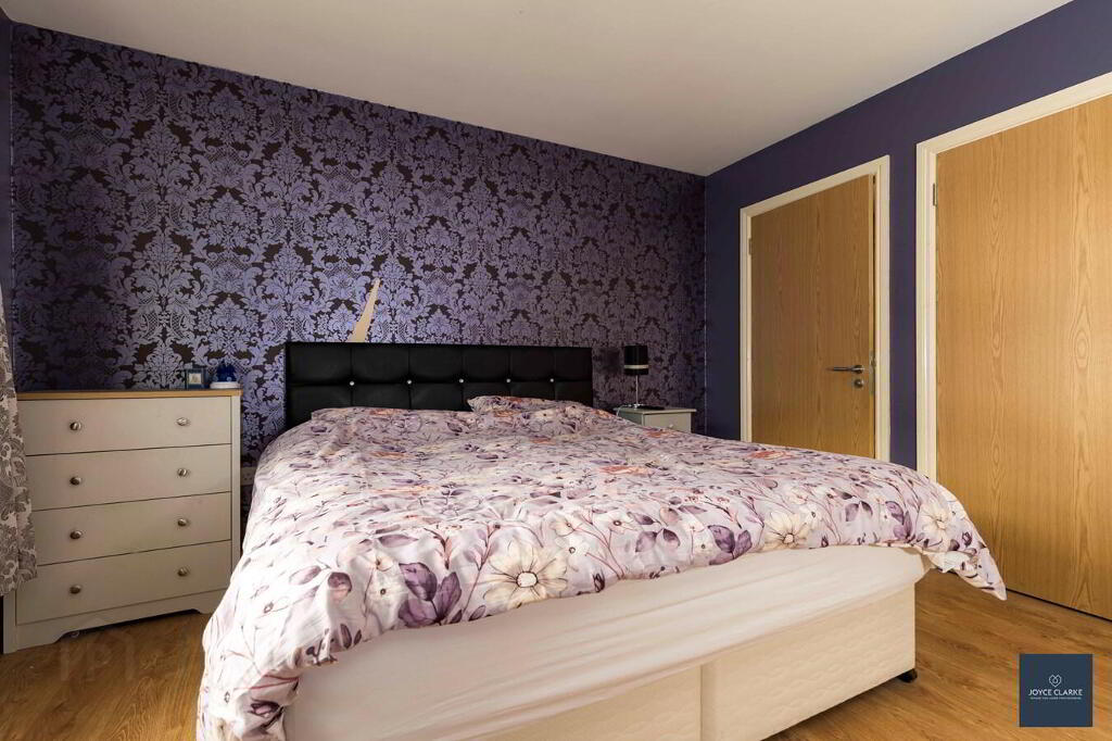MASTER BEDROOM 3.90m x 3.96m (12' 10" x 13' 0") Side aspect double bedroom. Double door built-in wardrobe with lighting. Wood effect laminate flooring. TV point for wall mounted TV. Single panel radiator.