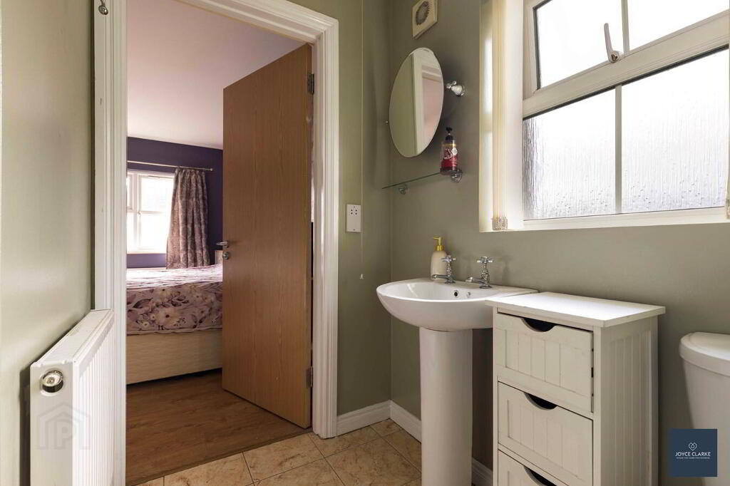 ENSUITE 2.06m x 2.85m (6' 9" x 9' 4") Tiled shower enclosure with mains fed shower. Dual flush WC and wash hand basin with pedestal. Tiled flooring. Single panel radiator. Extractor fan. Window providing natural light.