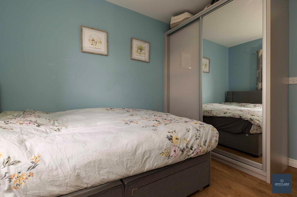 BEDROOM TWO 3.36m x 2.98m (11' 0" x 9' 9") Side aspect double bedroom. Recently fitted double slide door wardrobe with clothes rails, shelving and drawers. Wood effect laminate flooring. Single panel radiator.