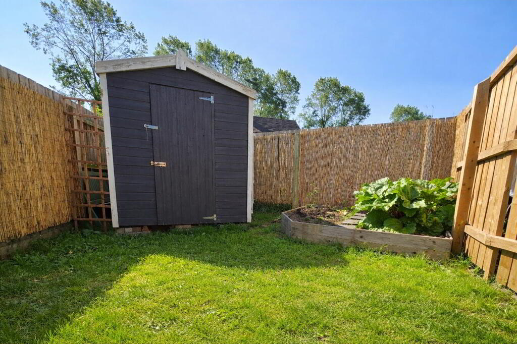 REAR GARDEN Fully enclosed rear garden, laid in lawn with mature shrubs. Paved patio area. Garden sheds. Outside tap. Wired for electric car charger. Tarmac driveway.