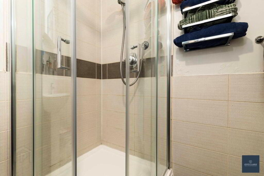 ENSUITE 2.66m x 1.20m (8' 9" x 3' 11") Tiled shower enclosure with mains fed shower. Dual flush WC and wash hand basin with pedestal. Single panel radiator. Tiled flooring and half tiled walls. Extractor fan.